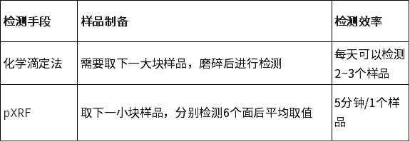 表:XRF和化學滴定法對于樣品制備的要求