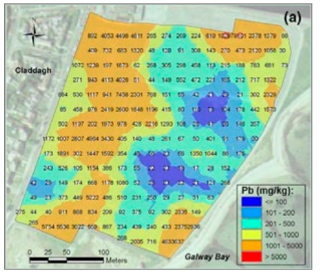 圖1. 在實施土壤修復項目的過程中采集到的樣本。左圖顯示為較差的采樣策略:采集的樣本數量不足,可能會出現大量的錯誤。右圖為正確的采樣方式:采集足夠數量的樣本,以確保場地各個區域的土壤都被檢測到。
