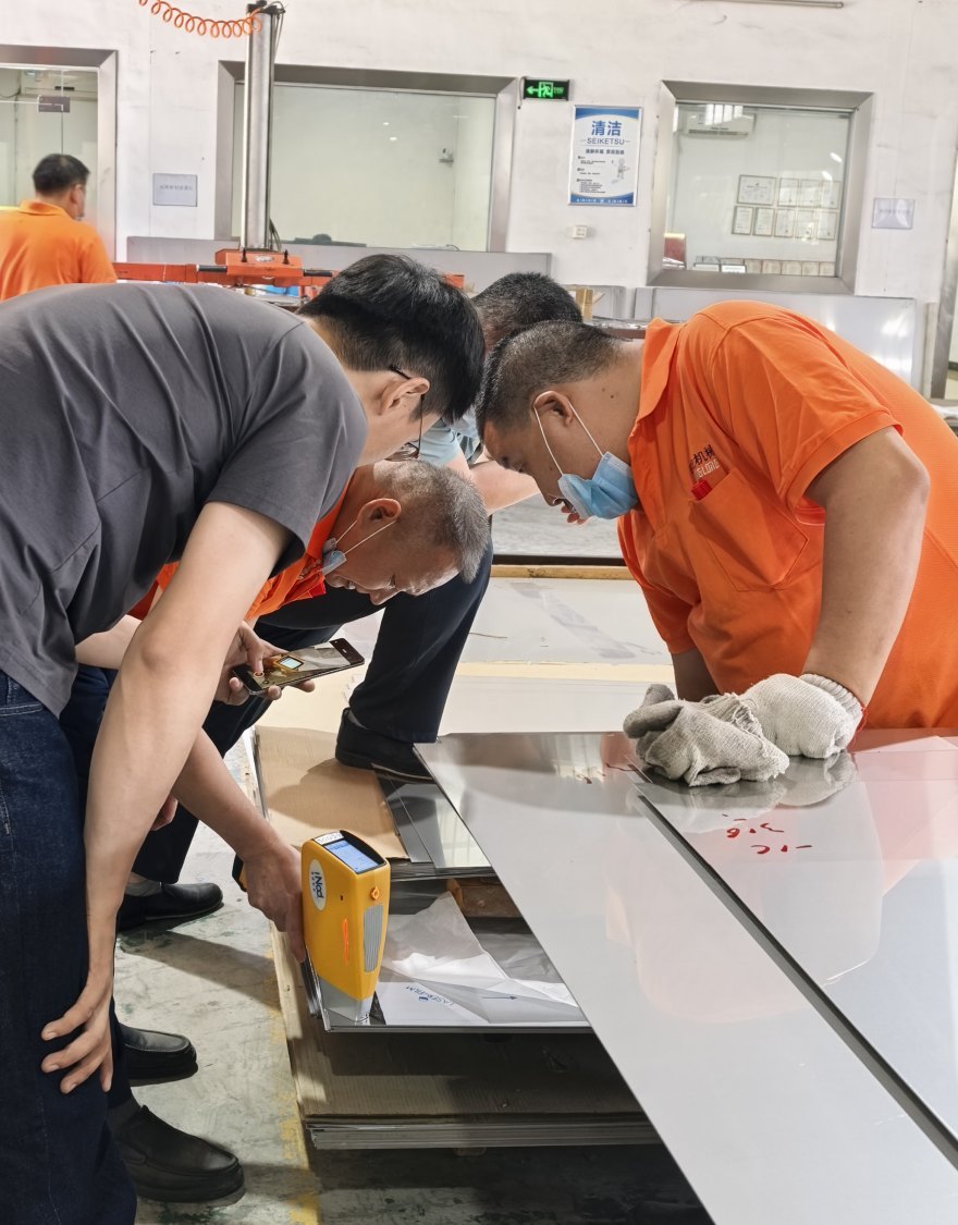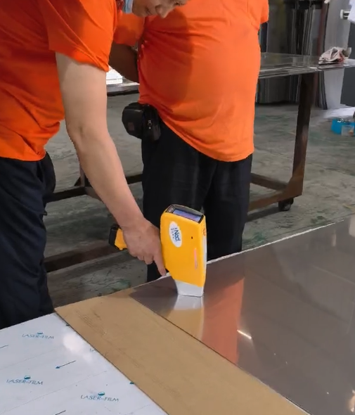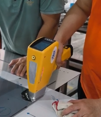 抵達客戶工廠后,工程師們迅速投入工作:先細致完成儀器校準,確保檢測精度;再對不銹鋼板材、管材、零部件等各類樣品進行表面清潔處理;隨后手持光譜儀貼近樣品,僅需1-3秒,即可精準測出關鍵元素含量,實時判定材質牌號,清晰區分304(無鉬)與316(含鉬)材質,快速甄別劣質、錯標原料。