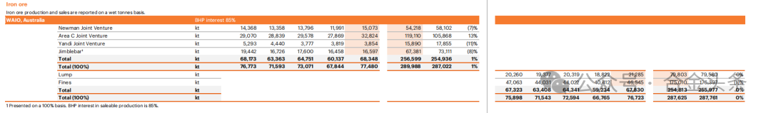 必和必拓2026財年(2025.07-2026.06)鐵礦石目標指導量2.84-2.96億噸(100%基準)。