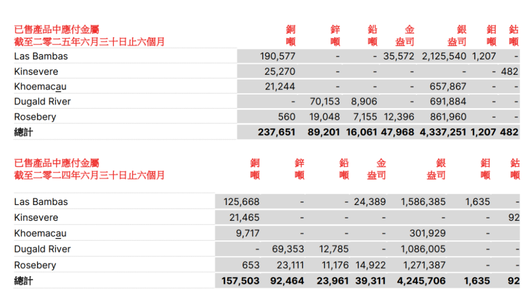 科馬考Khoemacau銅礦位于非洲南部卡拉哈里銅礦帶,保有銅資源量超640萬噸,銀資源量63億盎司。2021年投產(chǎn),設(shè)計(jì)年產(chǎn)銅6萬噸,銀160萬盎司。2024年3月被五礦資源收購(gòu)。今年上半年該礦銅產(chǎn)量為2.12萬噸,同比增長(zhǎng)121%,主要原因?yàn)榻衲晟a(chǎn)天數(shù)長(zhǎng)并且第二季度采礦量增加,2025年Khoemacau銅指導(dǎo)產(chǎn)量在4.3至5.3萬噸之間。