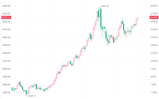 黃金市場同樣獲得機構投資者強烈看好。今年至今,金價已累計上漲約57%,是幾十年來表現最好的一年之一。這種上漲由一系列因素推動,如央行增加購買、通脹居高不下,以及投資者對美國經濟實力和關稅問題的擔憂。